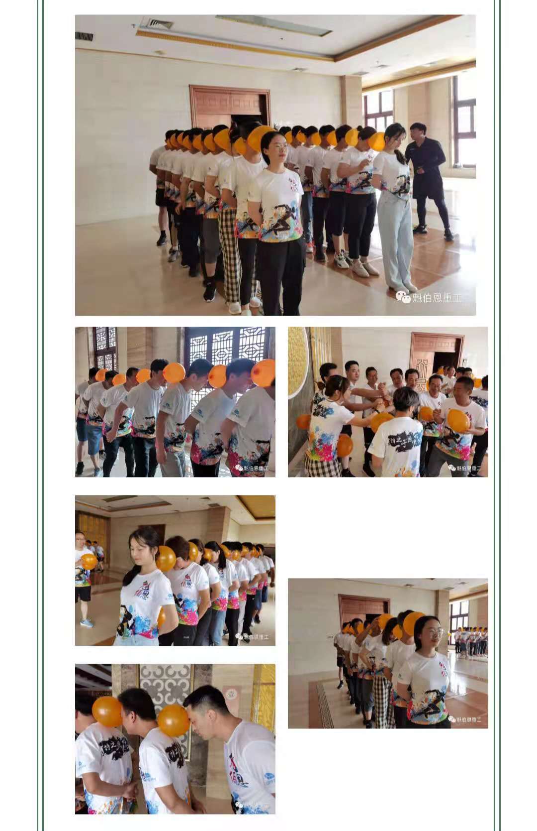 項目描述:每個人一個氣球放在前面一個人的后背,本人用頭頂住氣球,保證每個氣球不落地的情況下從起點(diǎn)走到終點(diǎn)!