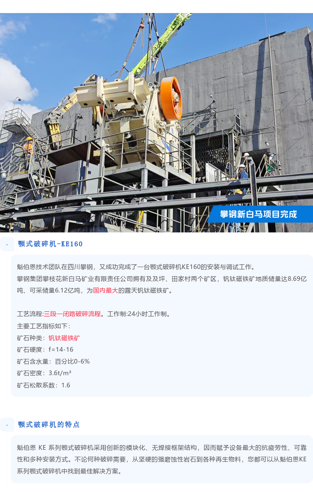 攀鋼集團顎式破碎機KE160項目案例